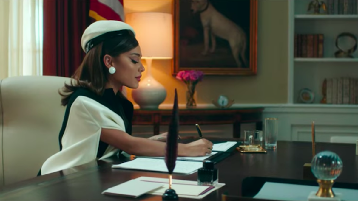 Ariana has been very vocal about encouraging her fans to vote in the upcoming election, so taking over the White House in her "positions" visual is very fitting. Directed by Dave Meyers, fans can see Grande juggle different "positions" as she takes on being President, and being able to whip up a good meal among other things.